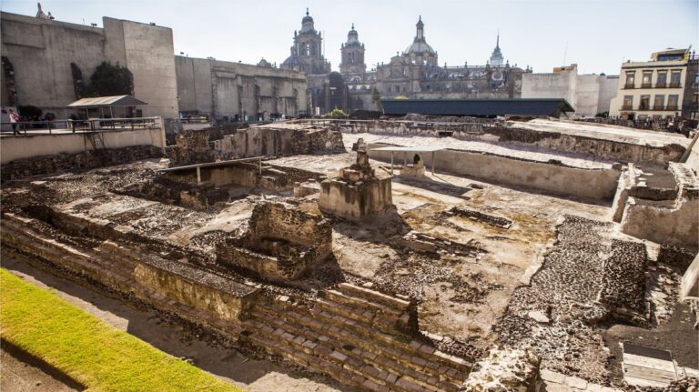 Descubre las ruinas aztecas en el sitio arqueológico del Templo Mayor, que ofrece una visión fascinante de la antigua Tenochtitlán.
